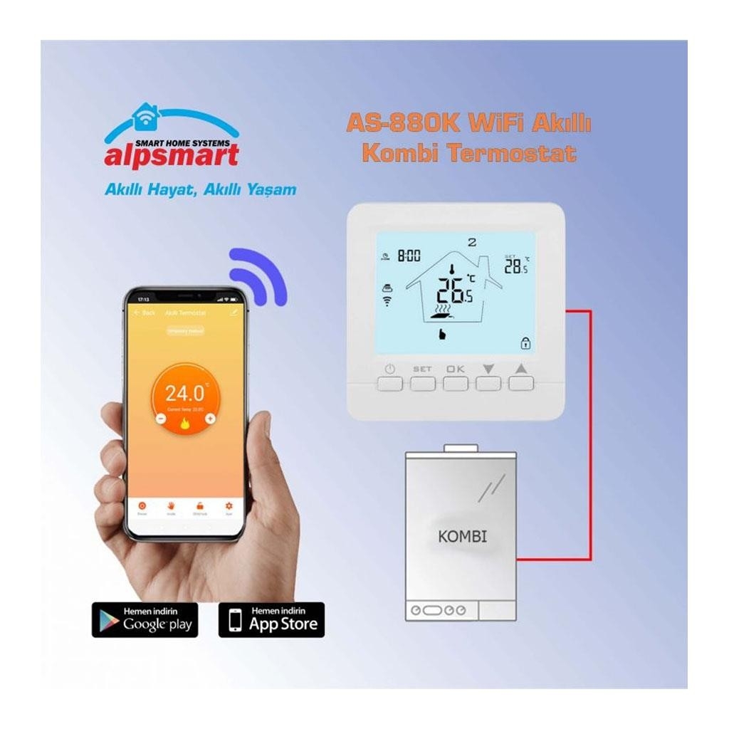 Evinizin sıcaklığını dünyanın her yerinden kontrol etmeye hazır mısınız? AlpSmart AS-880K Akıllı Wi-Fi Termostat, standart kombileri "akıllı" hale getirerek konforu ve tasarrufu bir araya getirir. Google Home ve Amazon Alexa desteğiyle sesinizle komut verin, haftalık programlama ile enerjiden %30'a varan tasarruf sağlayın.