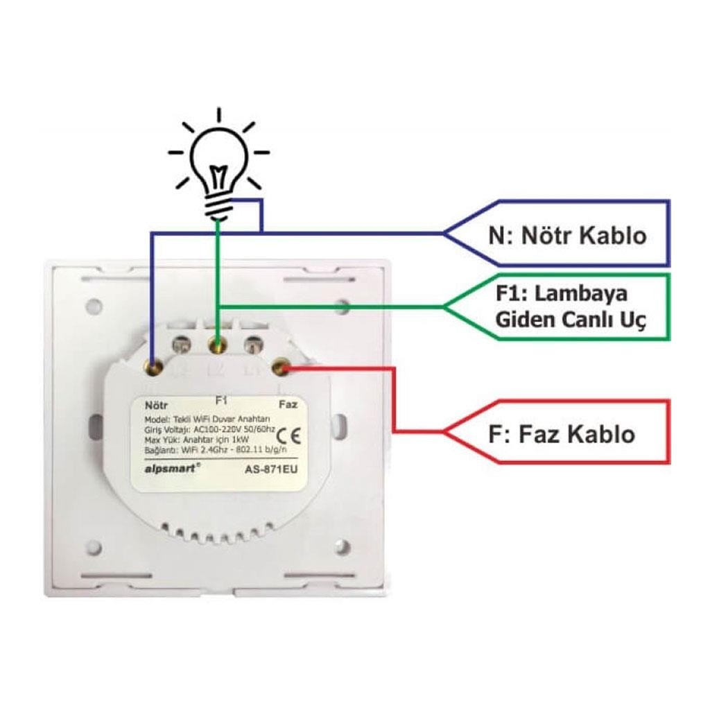 Alpsmart AS-871EU Dokunmatik Tekli Wifi Işık Lamba Anahtarı | Wi-Fi