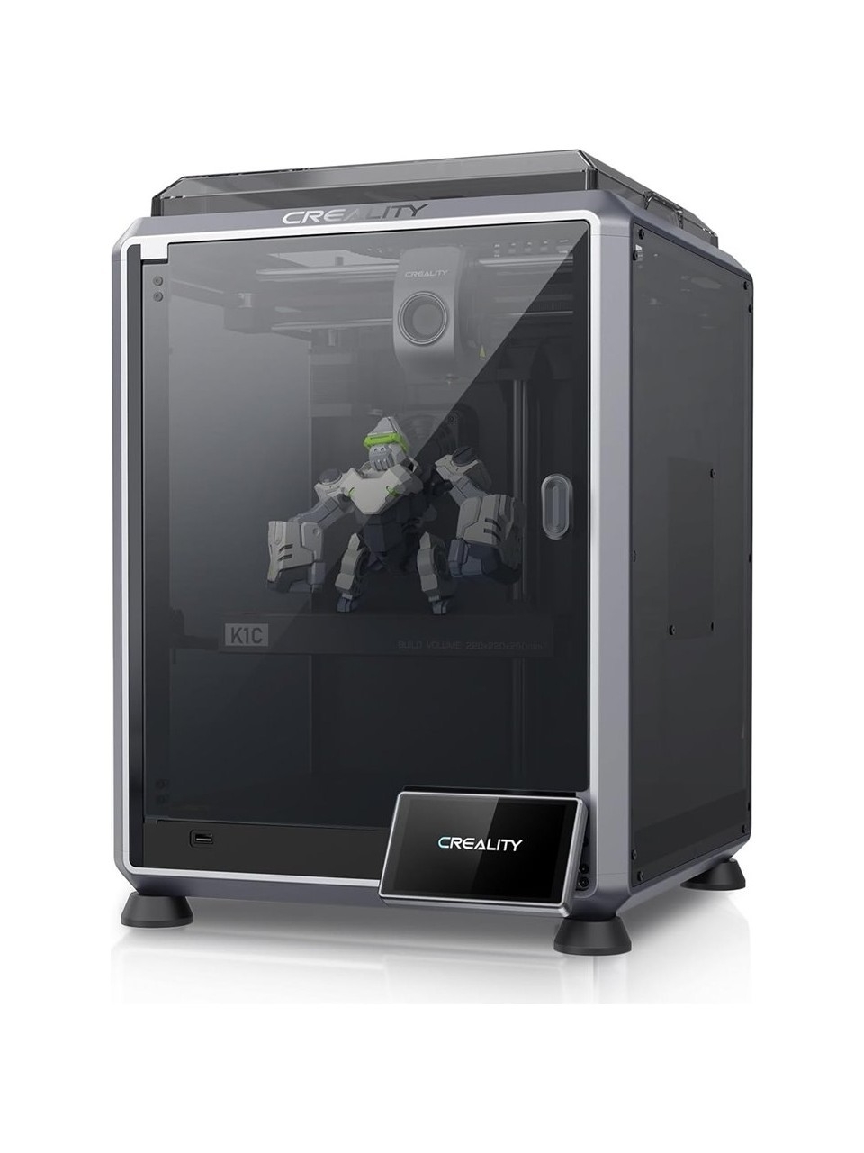 Creality New K1C High Speed 3D Yazıcı – Teknik Özellikler Baskı Hacmi: 220 × 220 × 250 mm Maksimum Baskı Hızı: 600 mm/sn İvmelenme: 20000 mm/sn² Ekstrüder: Doğrudan tahrikli, tıkanma önleyici, 50N ekstrüzyon kuvveti Nozul: Üç metal “Unicorn” nozul, 300 °C’ye kadar Desteklenen Filamentler: PLA, ABS, PETG, TPU, PA, PC, PA-CF, PET-CF Kalibrasyon: Tek dokunuşla otomatik seviyeleme, otomatik Z-ofset Bağlantı: Creality Cloud, Wi-Fi, LAN Sensörler: Filament bittiğinde durdurma, elektrik kesintisinde devam Kamera: AI destekli kamera (hata algılama, uzaktan izleme, timelapse çekimi) Çerçeve: Entegre döküm parçalar, akrilik kapak, termal muhafaza Filtreleme: Aktif karbon filtre, partikül ve VOC giderimi Gürültü Seviyesi: Sessiz modda yaklaşık 45 dB Yazılım & OS: Creality OS (Klipper tabanlı), Creality Print, Creality Cloud