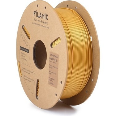 FİLAMİX HYPER PLA+ (GOLDEN) ALTIN RENGİ FİLEMENT Teknik Özellikler Filament Tipi: Hyper PLA+ (Yüksek Hızlı PLA+) Renk: Altın (Golden) Filament Çapı: 1.75 mm (±0.02 mm tolerans) Baskı Hızı: 60 – 300+ mm/sn Nozul Sıcaklığı: 200 – 220 °C Tabla Sıcaklığı: 25 – 60 °C Yoğunluk: ~1.24 g/cm³ Net Ağırlık: 1 kg makara Öne Çıkan Özellikler: Metalik altın görünüm ile premium baskılar Yüksek hızda dahi katman yapışmasını korur Düşük büzülme ve yüksek boyutsal doğruluk Pürüzsüz yüzey ve kokusuz baskı Özel tasarımlar, dekoratif ve ödül projeleri için ideal