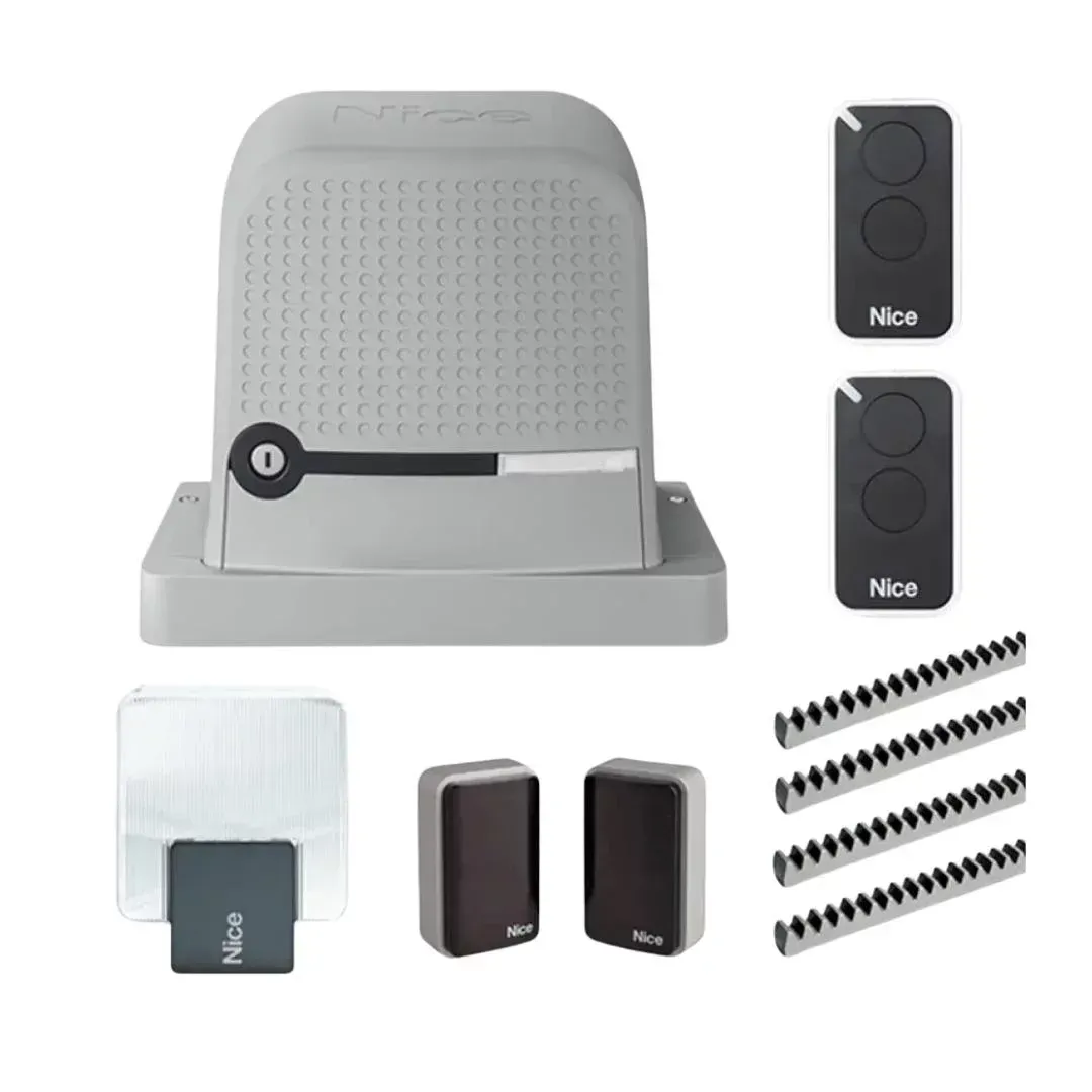 Nice Robus 600 HS Kumandalı Hızlı Kayar Kapı Motoru Seti-KİT Paket İçeriği 1 Adet Nice Robus 600 HS Otomatik Kapı Motoru 1 Takım Nice EPMB Emniyet Fotoseli 1 Adet Nice ELDC Flaşör Lamba 2 Adet Nice Kumanda (SM2) 1 Adet Nice MIDI WİFİ MODÜLÜ 4 Metre Kremayer Dişli Çelik 30X8 MM.