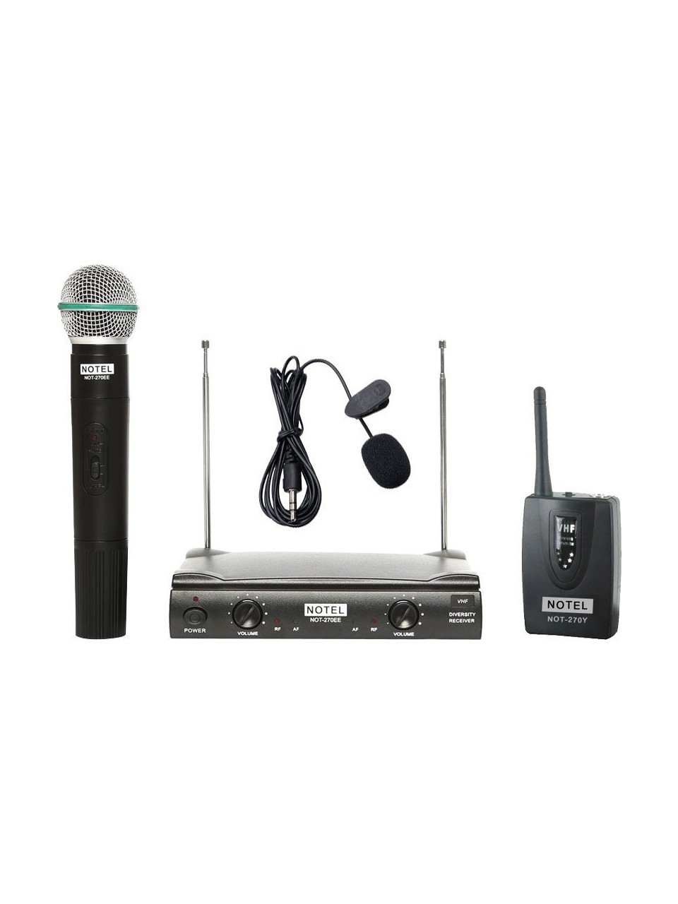 Notel NOT-270 EY, VHF sabit kanal teknolojisine sahip, 1 el + 1 yaka kablosuz mikrofon setidir. Yaklaşık 70 metre kapsama alanı, 190-260 MHz frekans bandı ve aynı ortamda 5 sete kadar kullanım desteği ile konferans, eğitim ve sahne uygulamaları için ideal çözümdür.