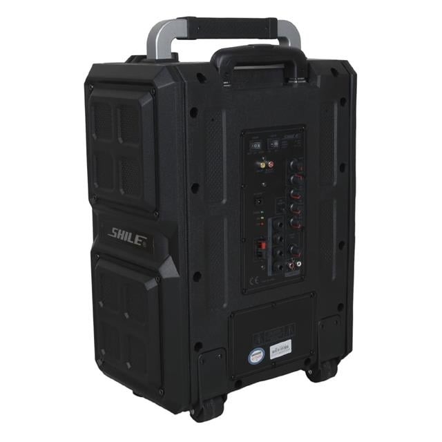 Shile SL-10 120 Watt Taşınabilir Seyyar Amfi Hoparlör Kablosuz 1 EL + 1 Yaka Mikrofonlu Kumandalı USB+SD+BT