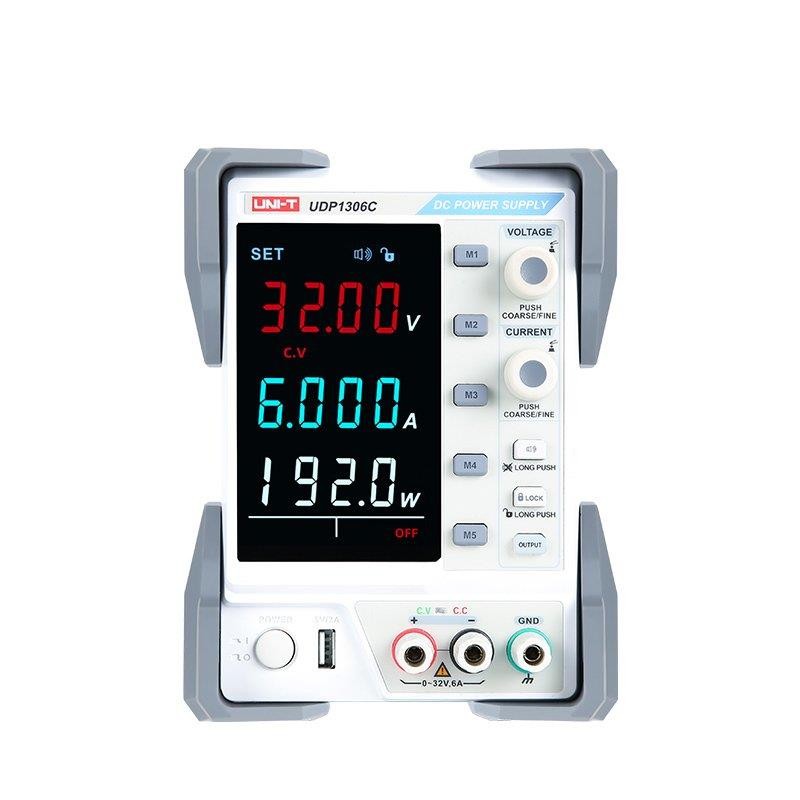 Unit UDP1306C güç kaynağının iki bağımsız çıkış grubu vardır: sabit voltaj (CV) ve sabit akım (CC) modlarına sahip 32V / 6A'lık ayarlanabilir çıkış ve kısa devre ve aşırı voltaj koruma özelliklerine sahip 5V / 2A'lık sabit çıkış