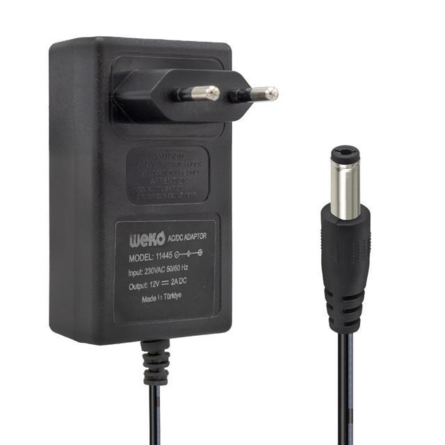 Weko 12 Volt 2 Amper 24 Watt Plastik Kasa Priz Tipi Adaptör (5.5x2.5 Uçlu)