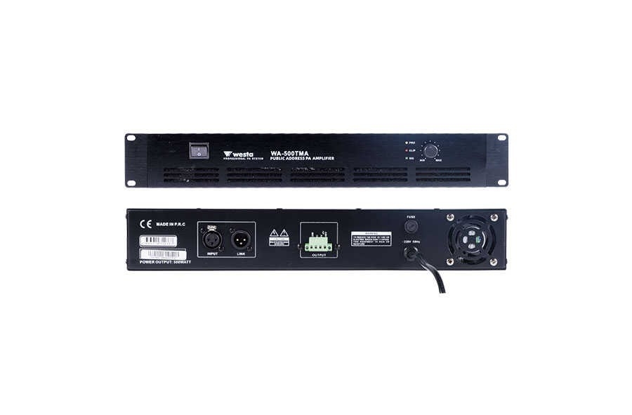 Westa WA-500TMA 500W Power Amfi Çıkış değeri: 100 V / 8 Ohm Kısa devre, clip, aşırı yükleme, aşırı ısınma durumu gösterge ledleri Güç: 100-240V - 50/60Hz Line input: 1 X XLR Erkek Line output: 1 X XLR Dişi Hoparlör Çıkışı: Soketli Klemens