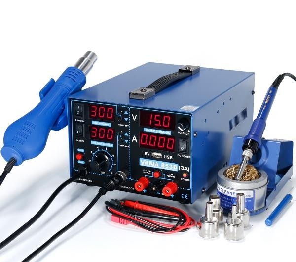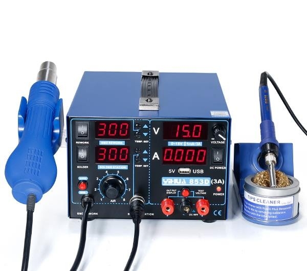 Güç kaynağına sahip YIHUA 853D lehimleme yeniden işleme istasyonu, SOIC, CHIP, QFP, PLCC, BGA, SMD, vb. gibi çeşitli elektronik bileşenlerin lehimlenmesi için idealdir.